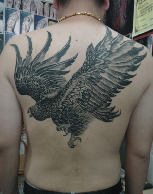 壮汉男人背部霸气老鹰纹身图图片