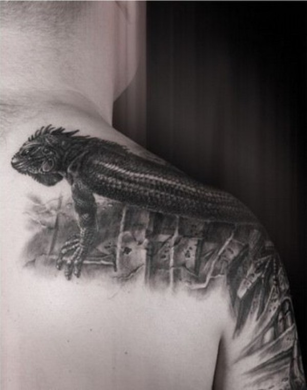 男人经典超酷的蜥蜴纹身