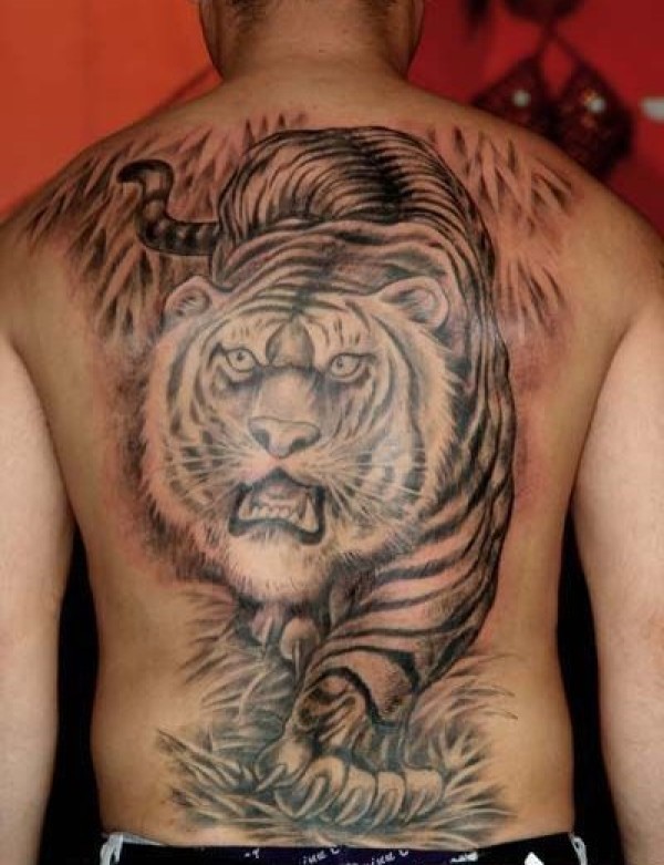 后背霸气的猛虎下山纹身图图片