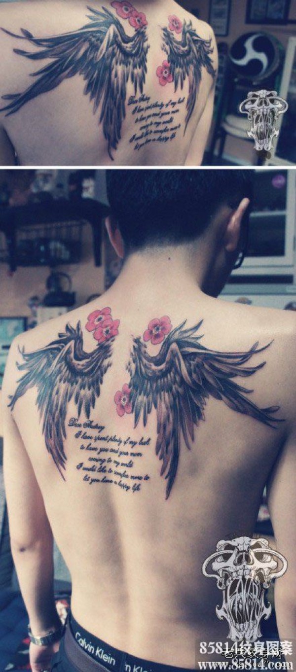 男人后背唯美时尚的天使翅膀纹身纹身图片