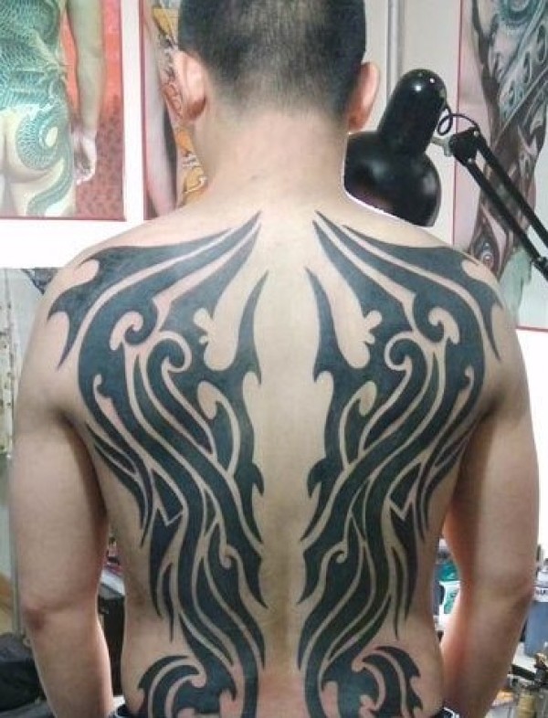 男性背部帅气的部落图腾纹身图案