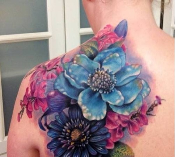 女生肩花纹身_15张女性双肩对称的肩花纹身图案作品图片