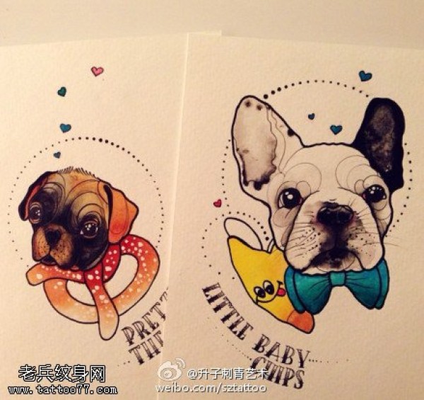 彩色个人汪星人纹身手稿图