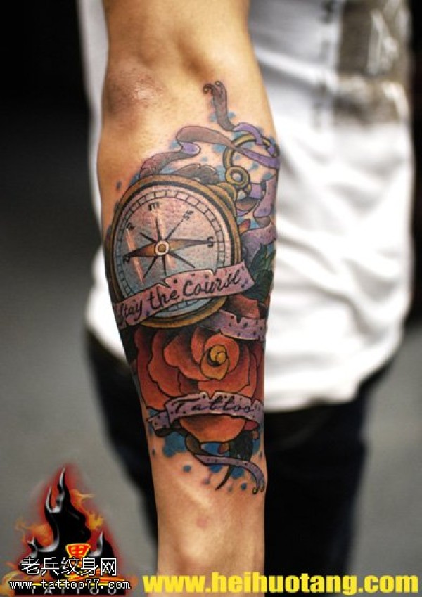 欧美玫瑰纹身 男生手臂上花朵纹身图片
