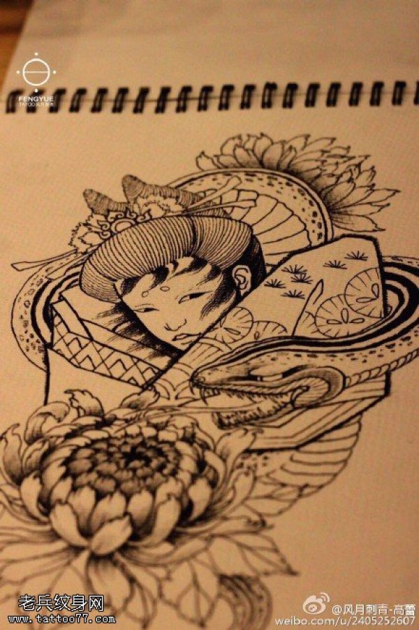 能面万媚纹身手稿_52张日式能剧面具纹身手稿图案素材欣赏