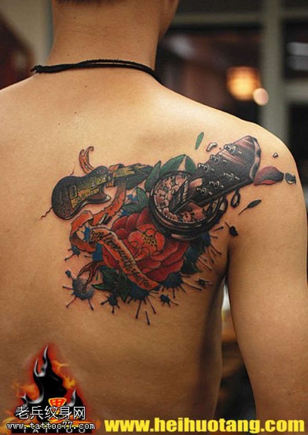欧美玫瑰纹身 男生手臂上花朵纹身图片