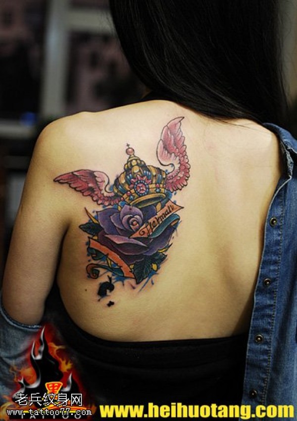 后肩唯美花藤英文图案图片_植物纹身图案大全_纹身图吧