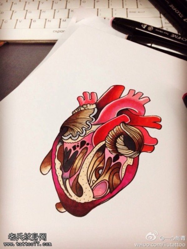 彩色心脏纹身手稿图片
