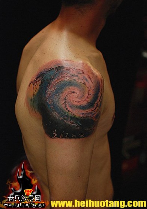 肩部裂纹银河星空纹身图案