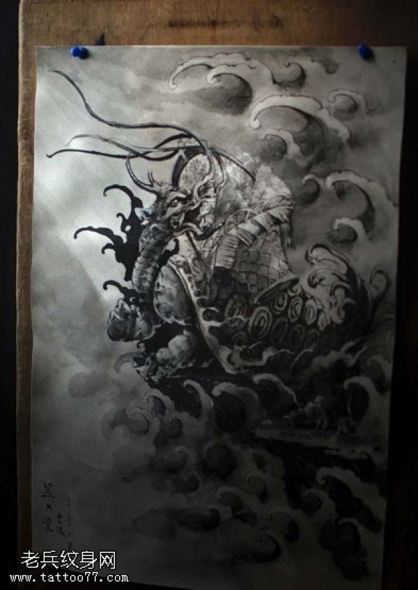 龙纹身手稿_一组老传统黑灰龙手稿纹身图案
