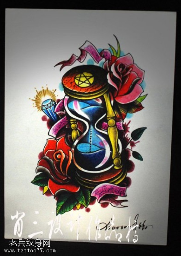 分享颜色闪眼大话锦簇沙漏纹身图案