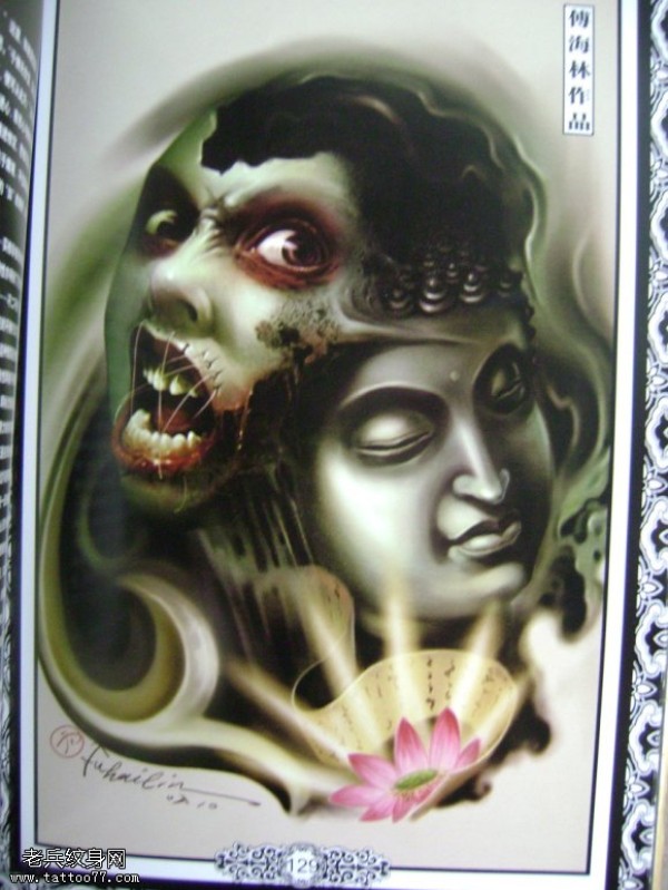 一款佛与魔纹身图案分享