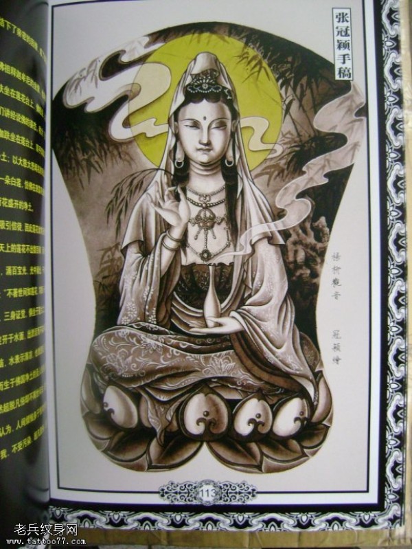 一款经典的满背观音纹身图案