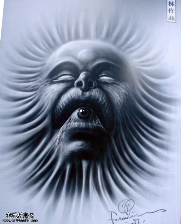 能面万媚纹身手稿_52张日式能剧面具纹身手稿图案素材欣赏