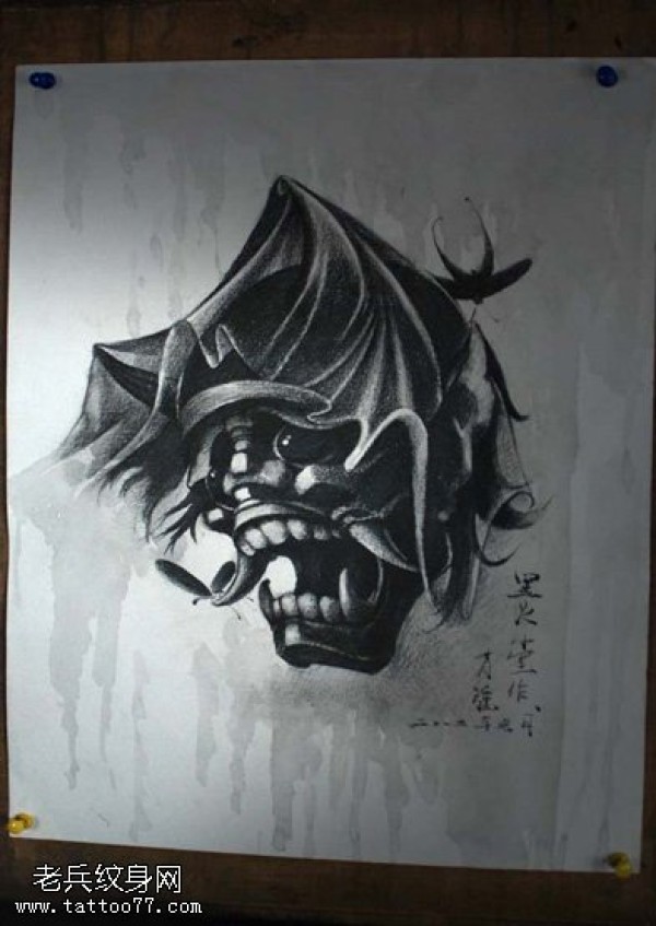 能面万媚纹身手稿_52张日式能剧面具纹身手稿图案素材欣赏