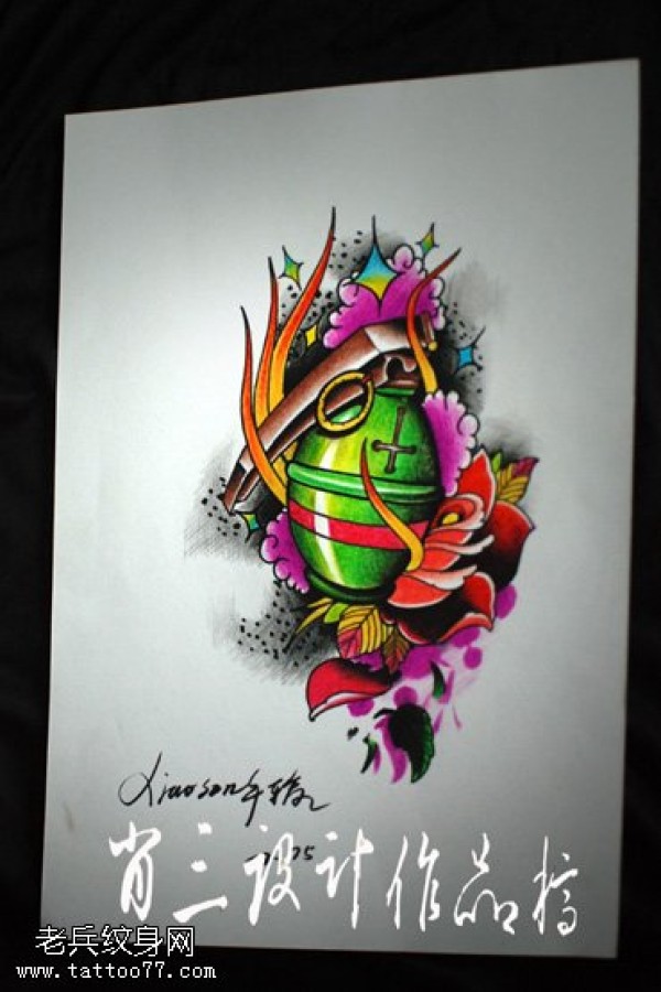 超唯美二次元漫画风格手雷纹身图案