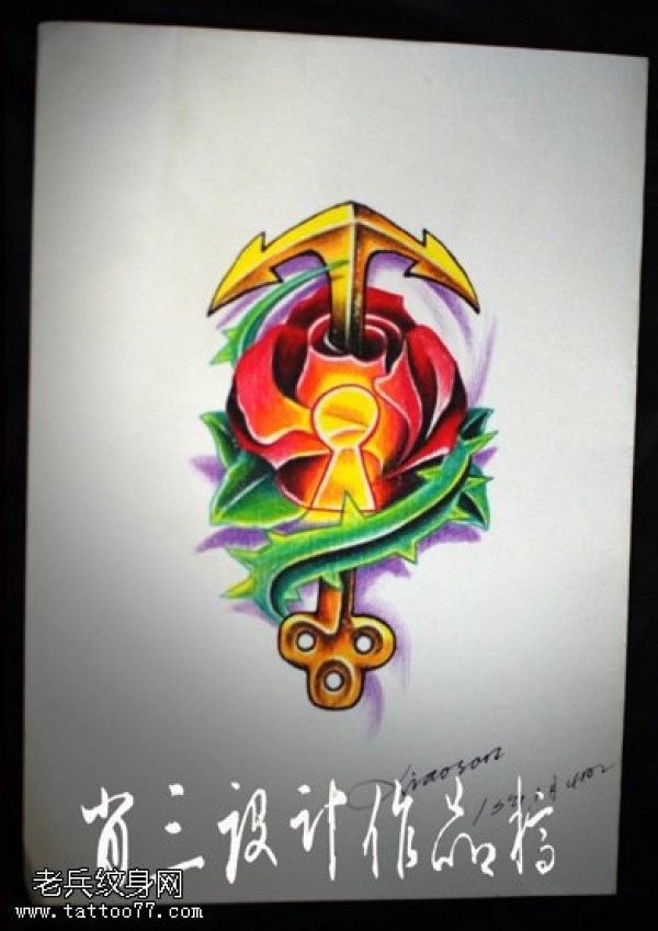 花朵黄金锚纹身图案