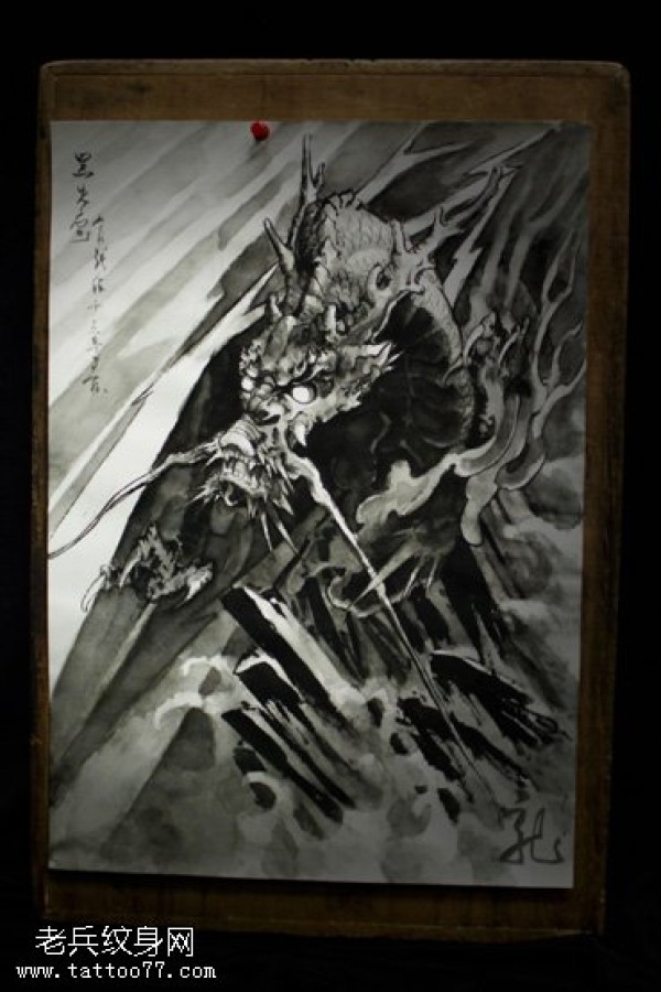 龙纹身手稿_一组老传统黑灰龙手稿纹身图案