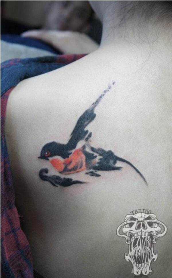 女性后背漂亮时尚的水墨小燕子纹身图片