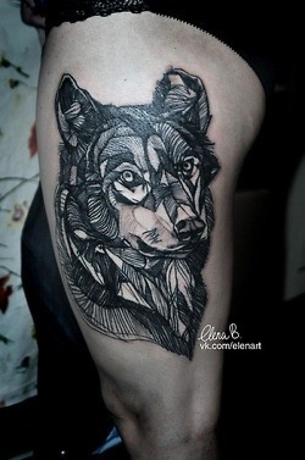 狼头纹身图案受到很多比较有思想的人的青睐
