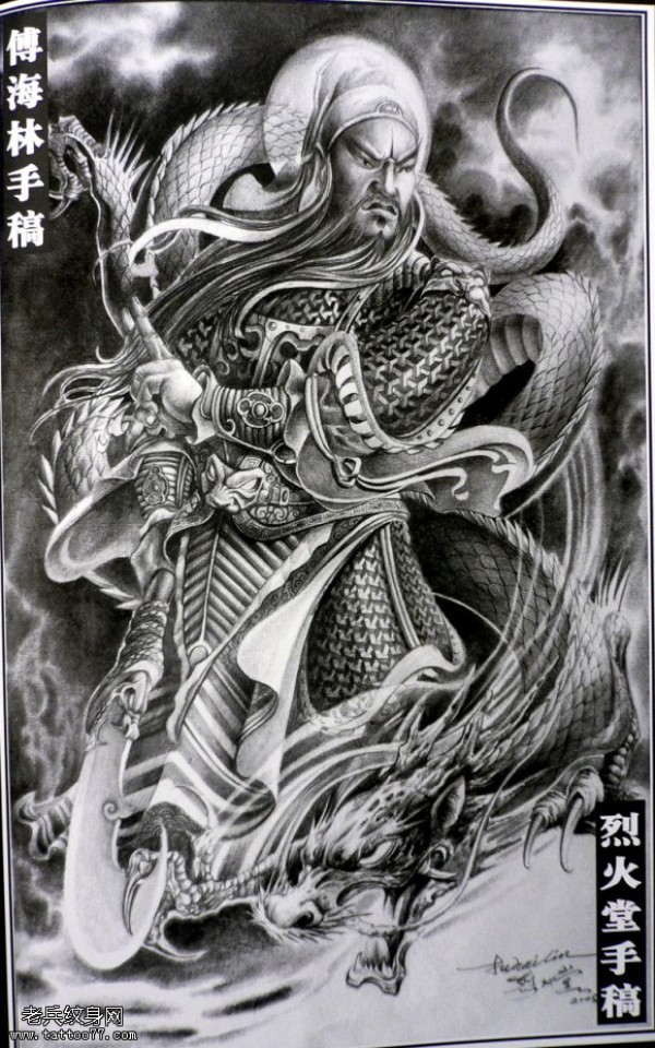 龙纹身手稿_一组老传统黑灰龙手稿纹身图案