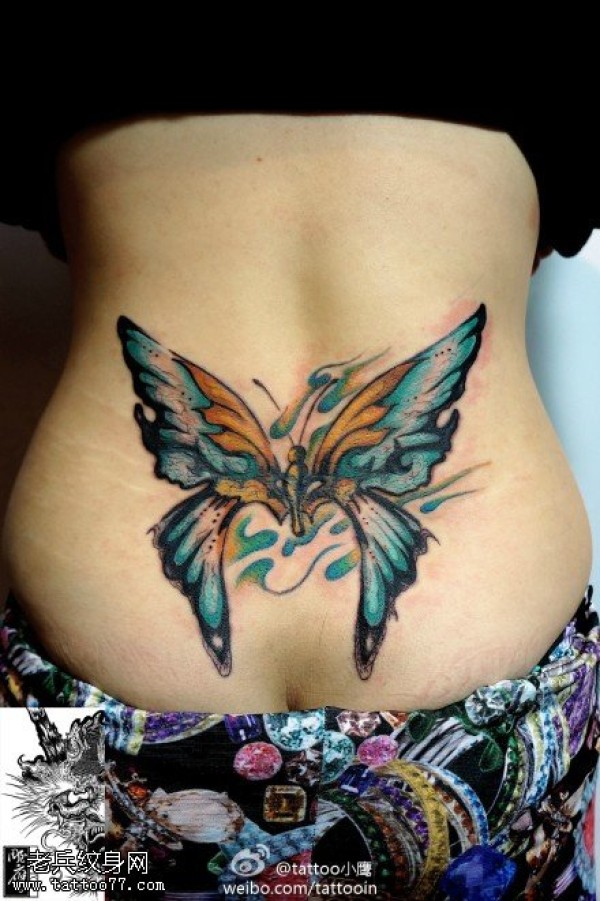 分享一款腰部时尚性感的蝶恋花纹身图案_腰部纹身图案大全_纹身图吧