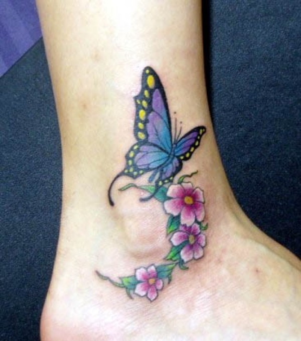 脚踝漂亮的蝴蝶纹身