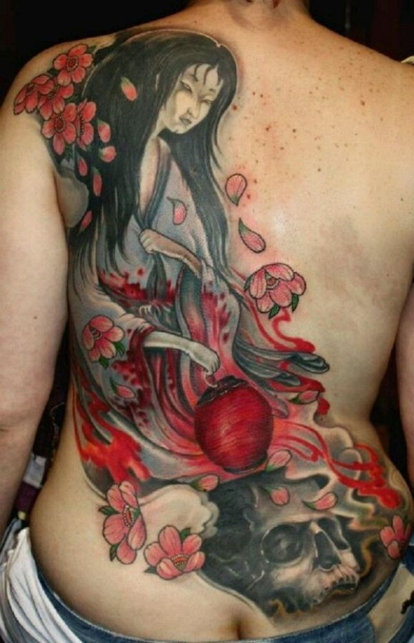 性感女生满背创意文身作品