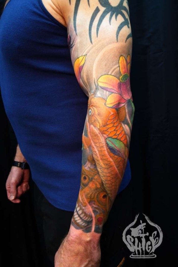 色彩鲜艳的花臂纹身