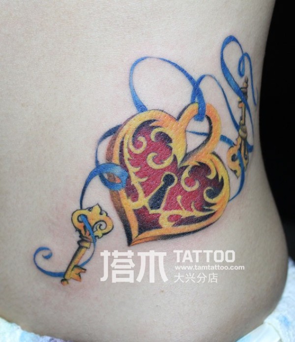 分享一款腰部时尚性感的蝶恋花纹身图案_腰部纹身图案大全_纹身图吧