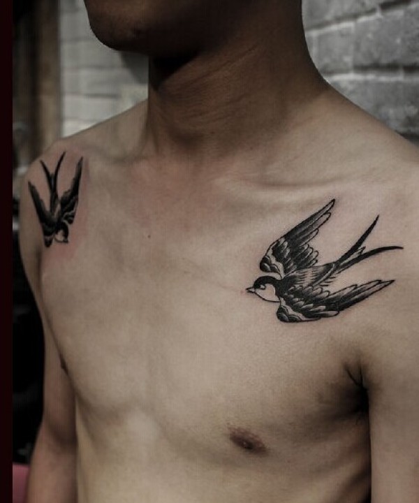 时尚人士的胸部双燕纹身