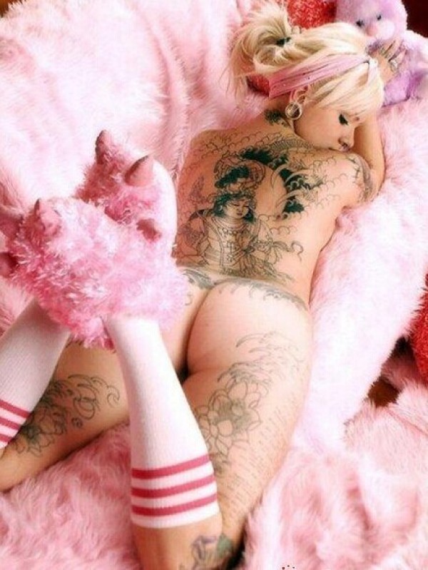 性感女生满背创意文身作品