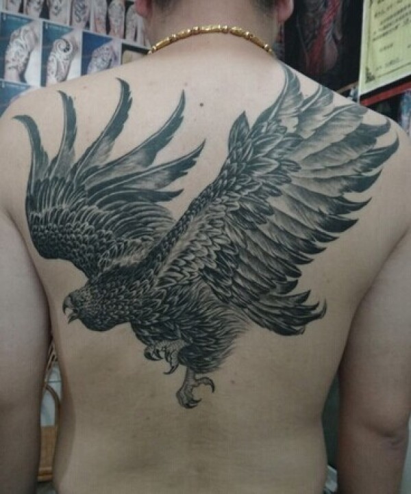霸气外漏的满背大鹏展翅纹身