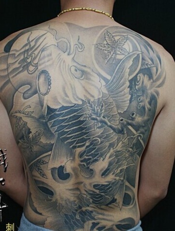 个性经典的满背鲤鱼纹身
