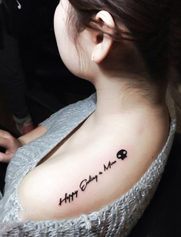 女生身上唯美时尚的英文刺青