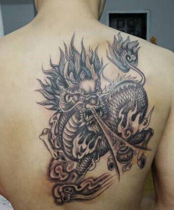 龙纹身手稿_一组老传统黑灰龙手稿纹身图案