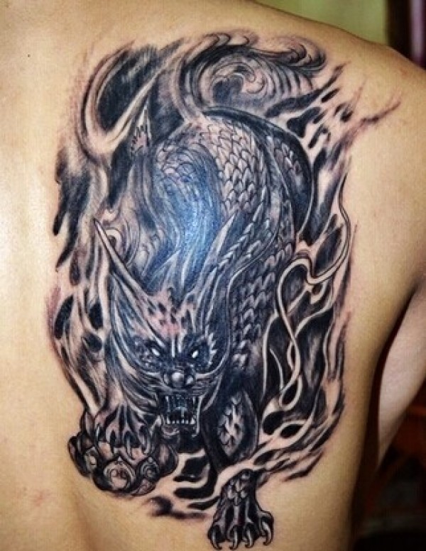 龙纹身手稿_一组老传统黑灰龙手稿纹身图案
