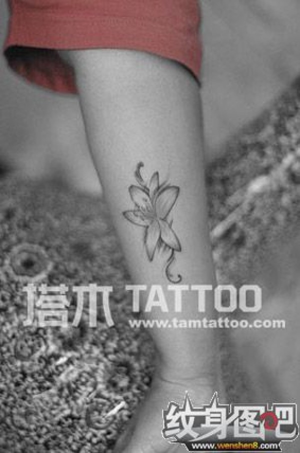 小臂上的一朵百合花纹身图案