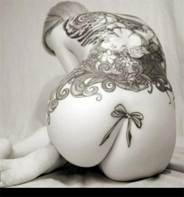 性感美女臀部小小的蝴蝶结纹身