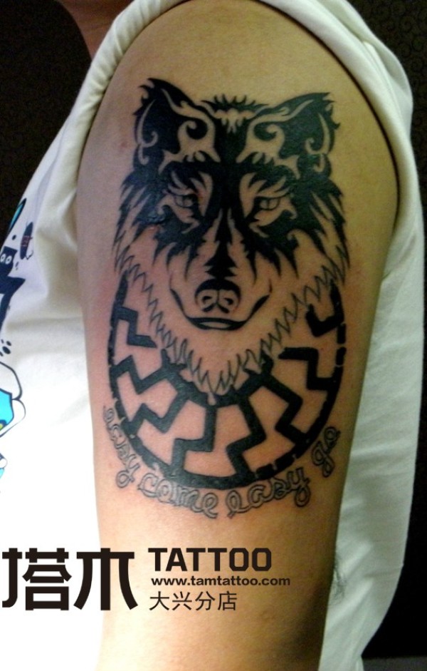 男生手臂狼图腾纹身