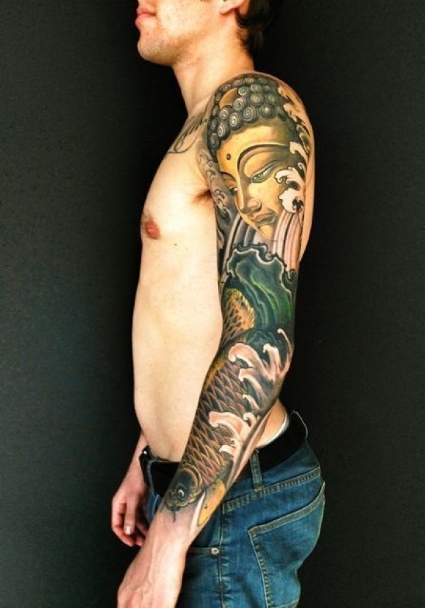 时尚帅气的鲤鱼花臂纹身