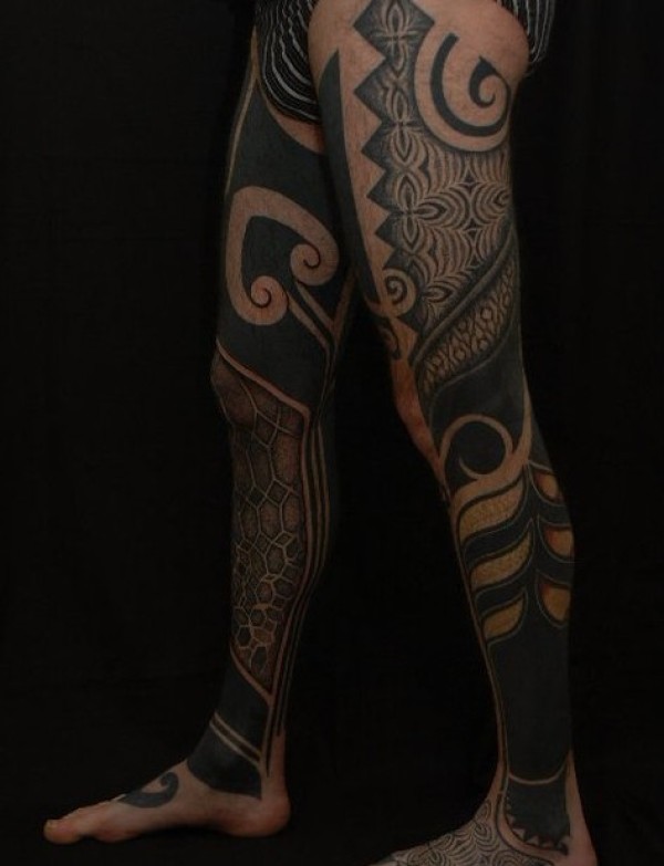 花腿纹身--一组大黑腿纹身图案作品欣赏