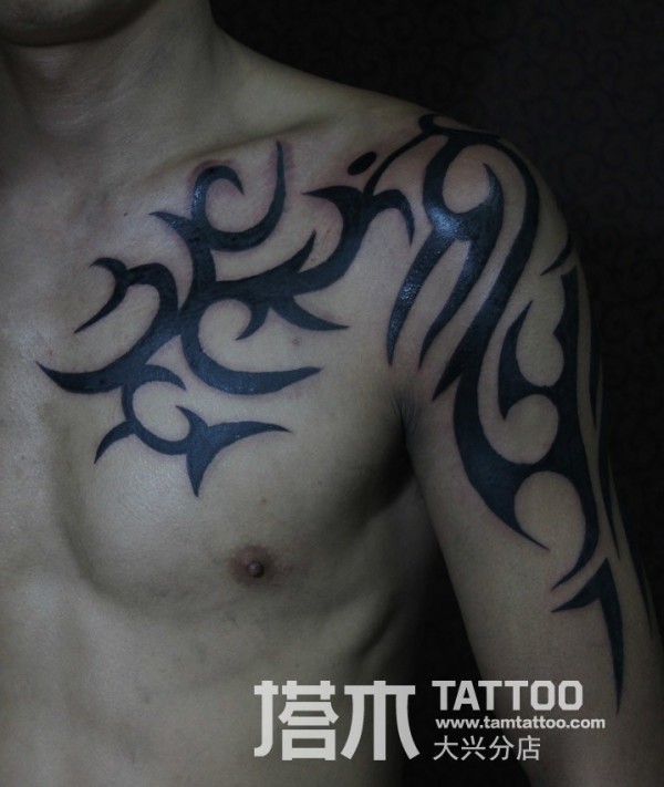 男性超帅气的黑色半甲部落图腾纹身图案