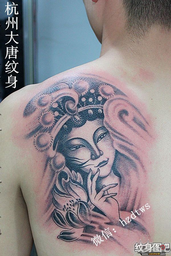 女生肩花纹身_15张女性双肩对称的肩花纹身图案作品图片