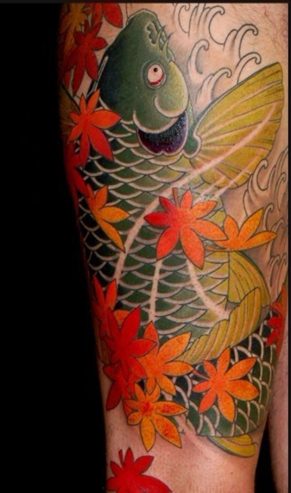 一组活力年轻派的鲤鱼纹身图案