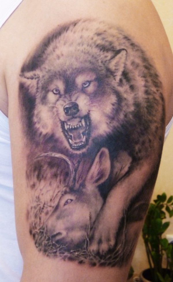 手臂上霸气的狼纹身