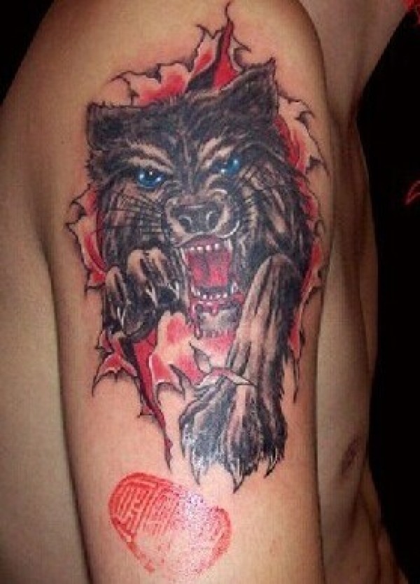 手臂上霸气的狼纹身