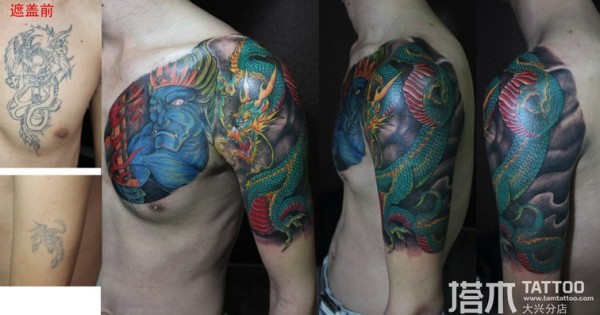 不动明王纹身龙纹身半甲纹身遮盖纹身
