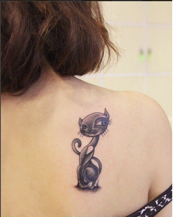 女生后腰纹身黑白灰风格抽象线条纹身图案