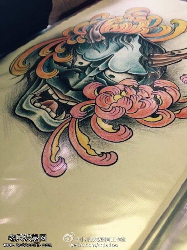 彩色般若菊花纹身手稿图案